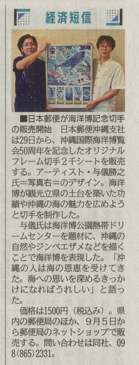 [琉球新報]日本郵便が海洋博記念切手の発売開始