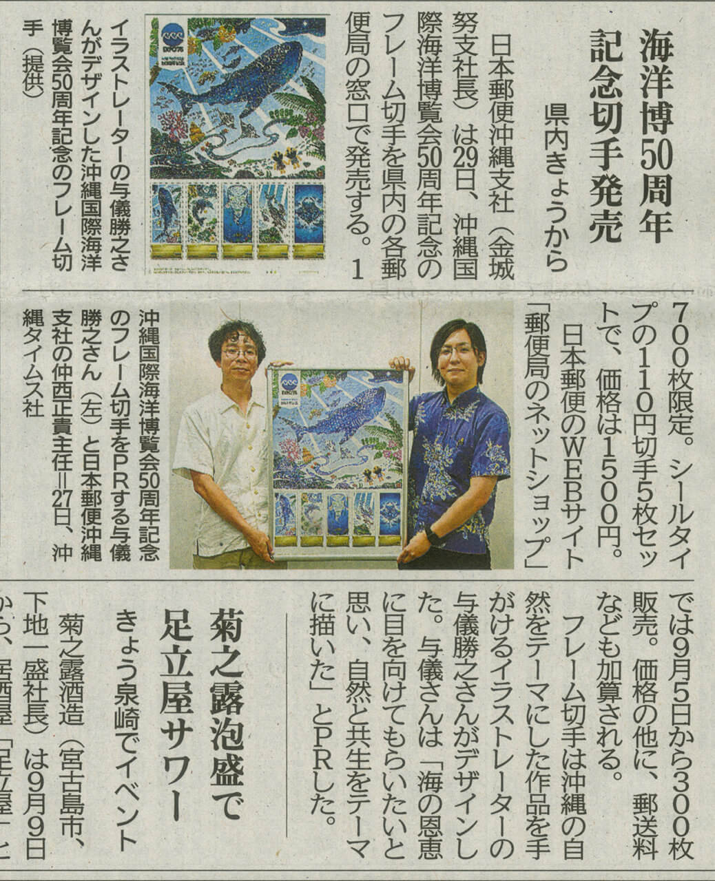 [沖縄タイムス]海洋博50周年記念切手発売 県内きょうから